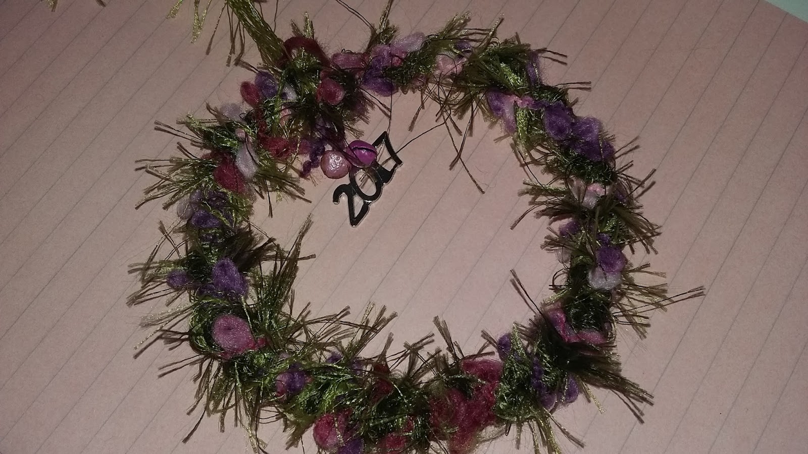 And this is a little wire and yarn wreath I had made earlier in the year and turned it into a lucky charm for Tua.